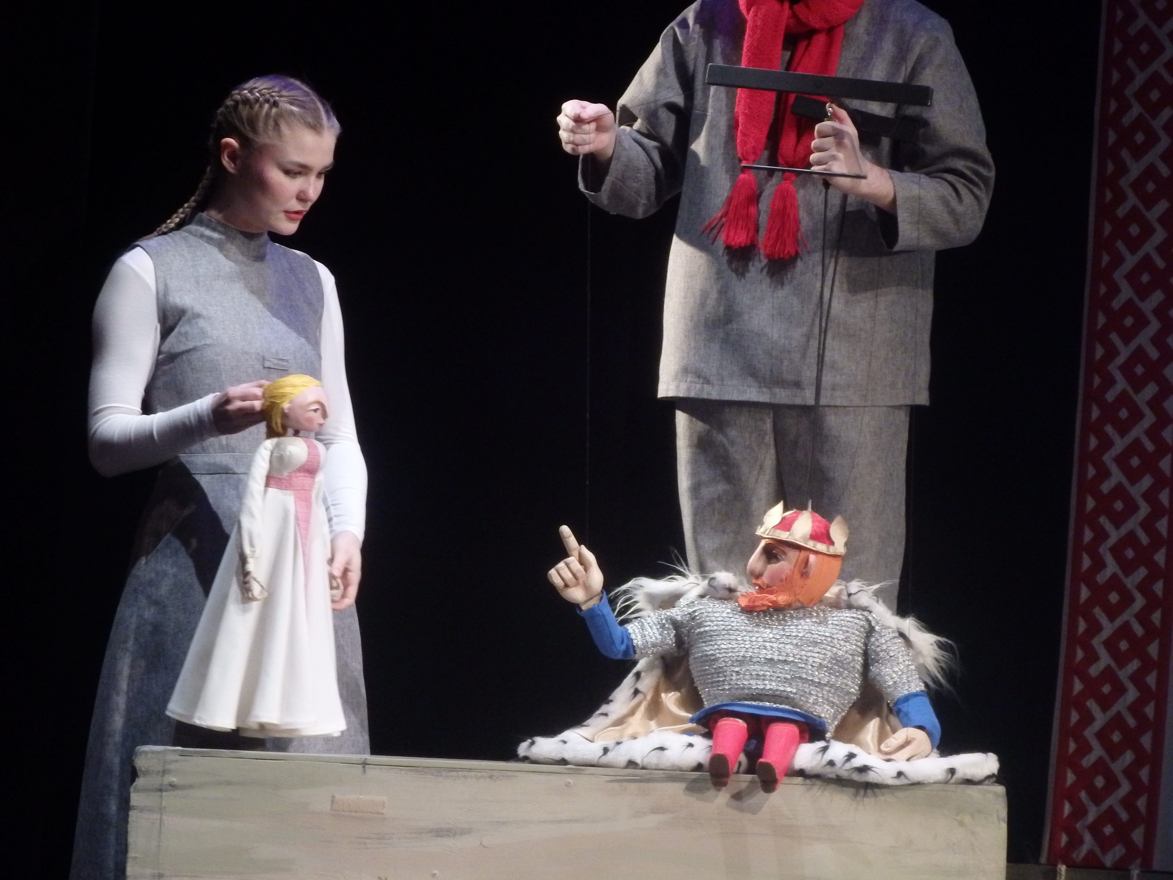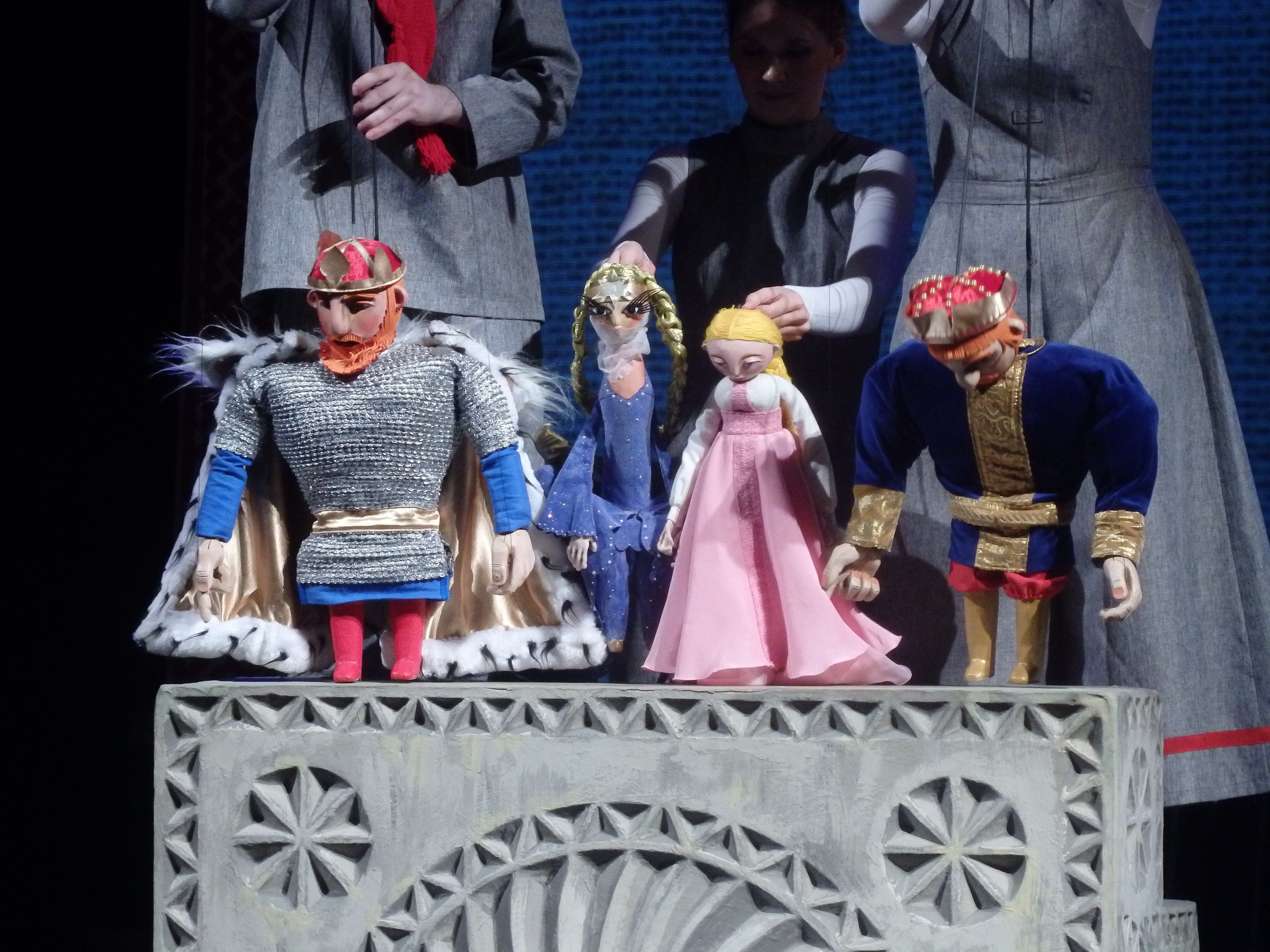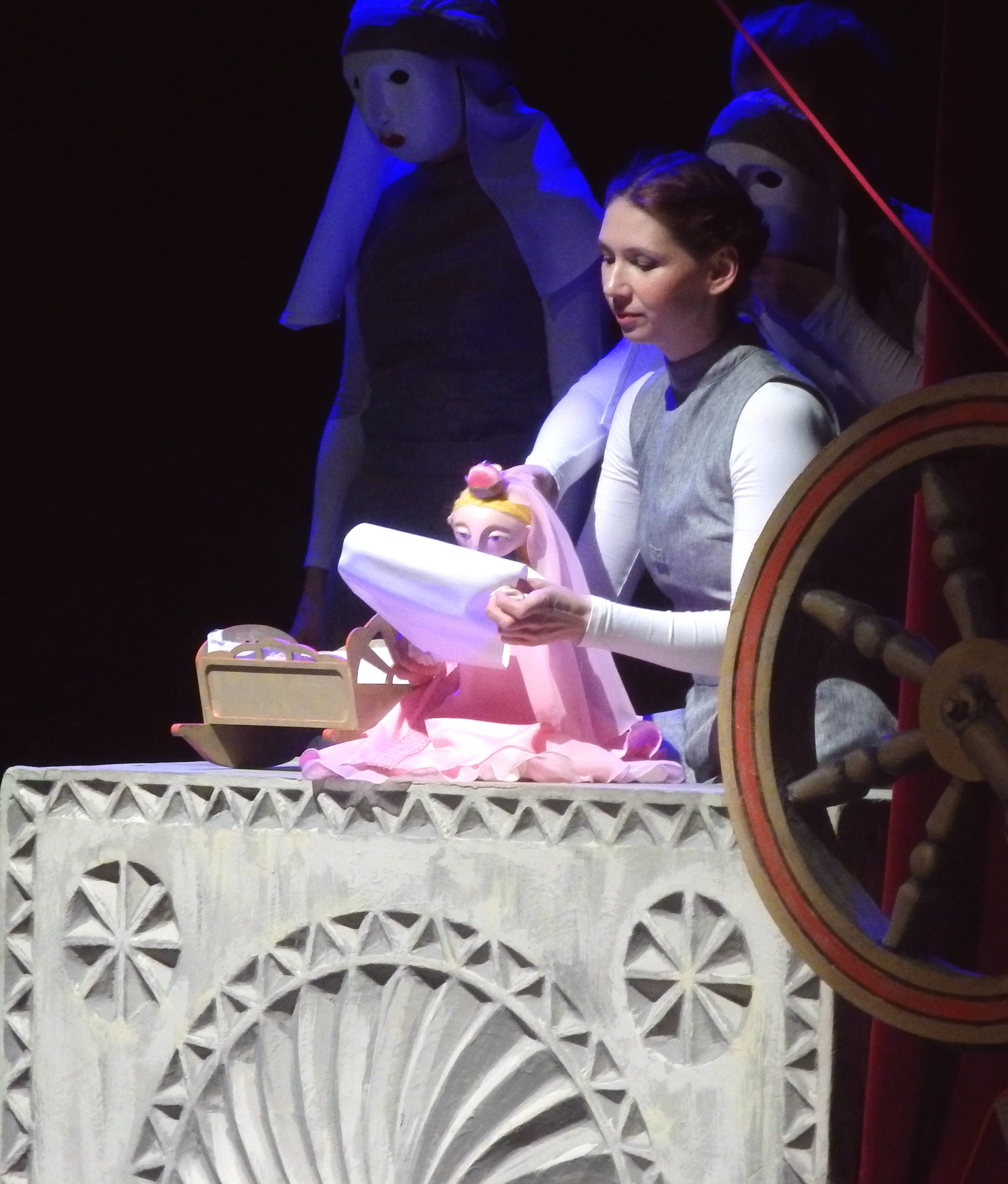 Любимая сказка Пушкина в театре кукол предстает в виде «самотканной» истории. Помните: «Три девицы под окном пряли поздно вечерком...».