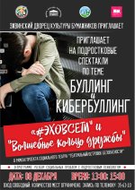 Демонстрация спектаклей по теме буллинга: "Волшебное кольцо дружбы" и " #Эховсети", о взаимоотношениях в детской и подростковой среде, о поиске вариантов без конфликтного общения, о диалоге и дружбе.