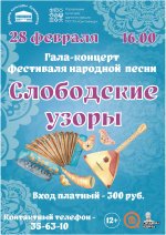В Эжвинском Дворце культуры бумажников города Сыктывкара пройдет открытый городской фестиваль-конкурс народной песни «Слободские узоры» в рамках праздничных мероприятий посвященный Году единства народов России и Масленичным гуляниям.