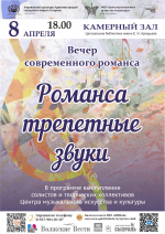 «Музыкальная гостиная» Центра музыкального искусства и культуры вновь открывает свои двери для поклонников этого «волнующего душу» жанра и приглашает на новую концертную программу «Романса трепетные звуки», посвященную современному романсу.