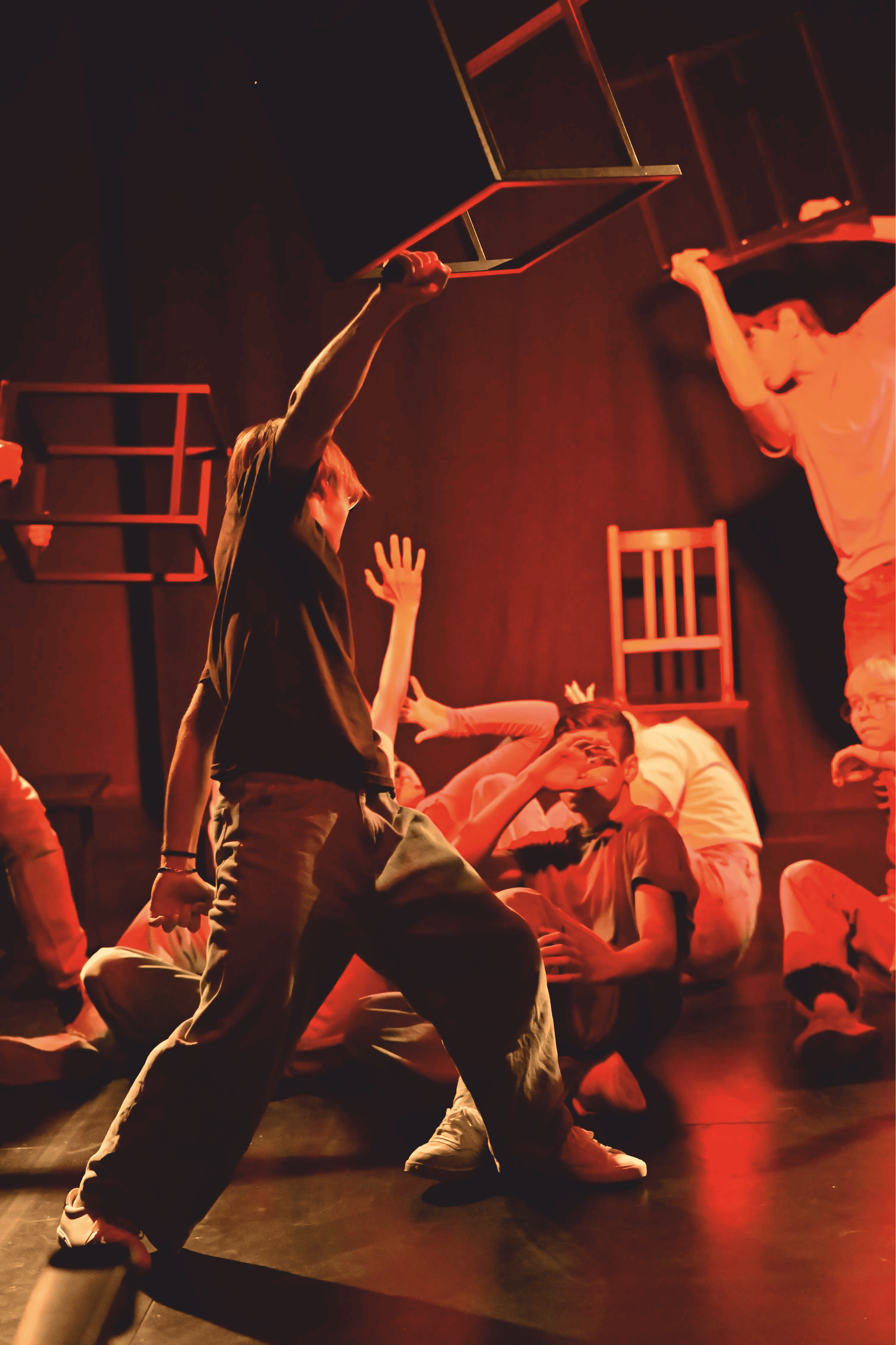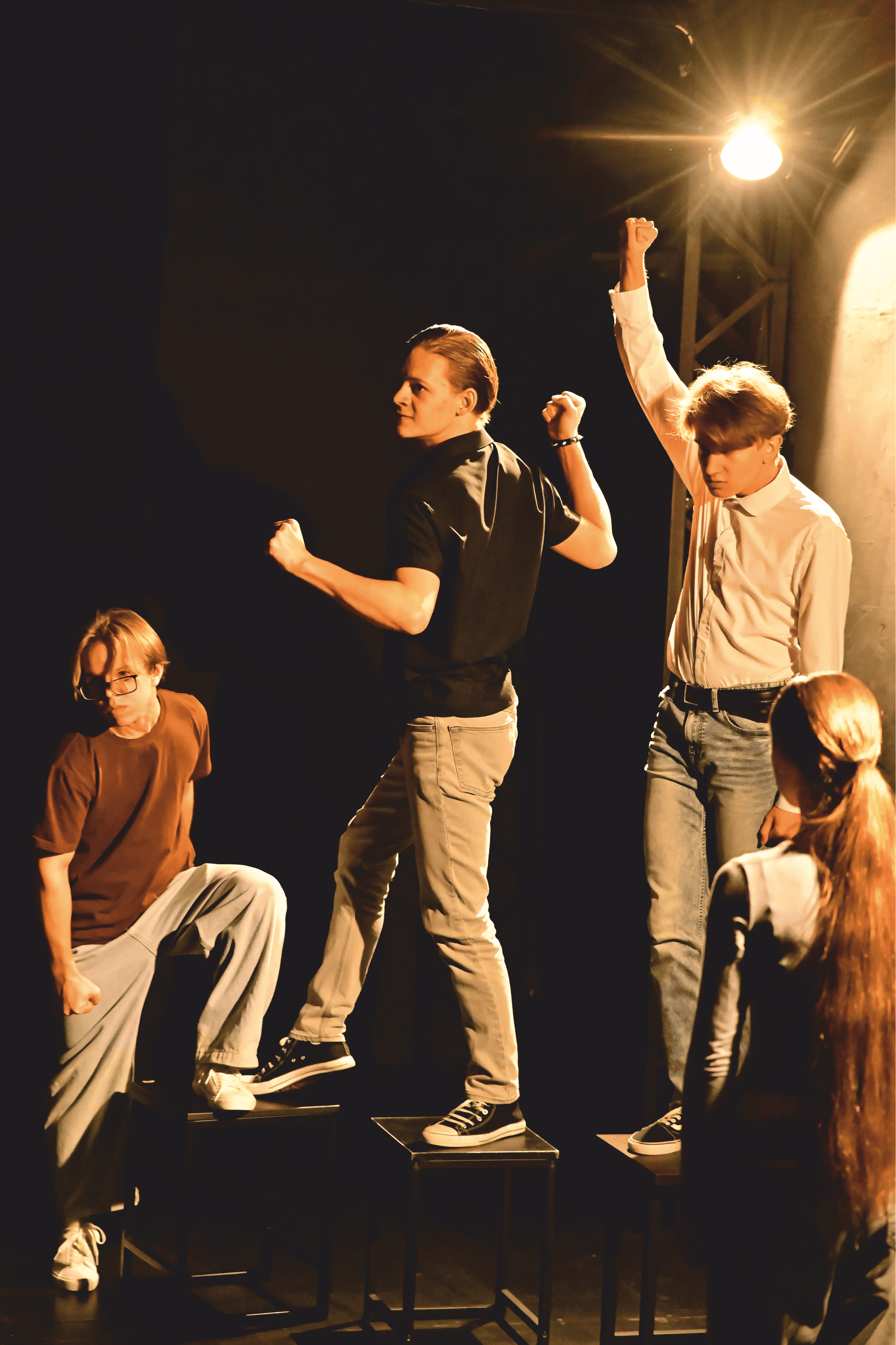Спектакль «Волна» — это сценическая адаптация знаменитого романа Тода Штрассера, основанного на реальных событиях. Постановка исследует опасный социальный эксперимент, который проводит учитель истории, чтобы наглядно показать своим ученикам природу нацизма. На глазах у зрителей обычный школьный класс стремительно превращается в сплоченное, но тоталитарное сообщество с жесткими правилами, подавляющее индивидуальность.