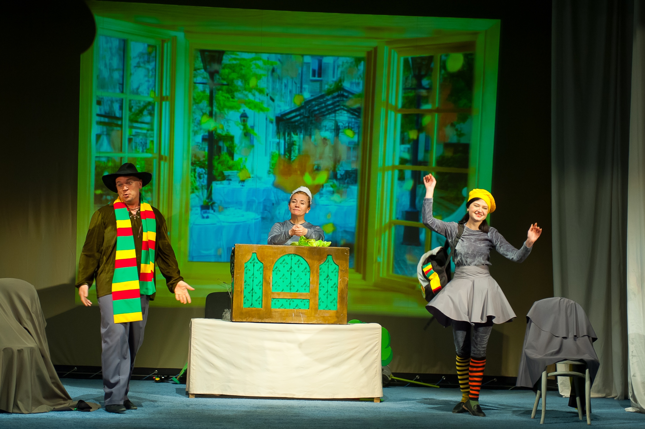 В спектакле заняты актеры: заслуженный артист ЛНР Юрий Нетруненко, заслуженная артистка ЛНР Алла Гиталова, Евгения Кильдибекова.
