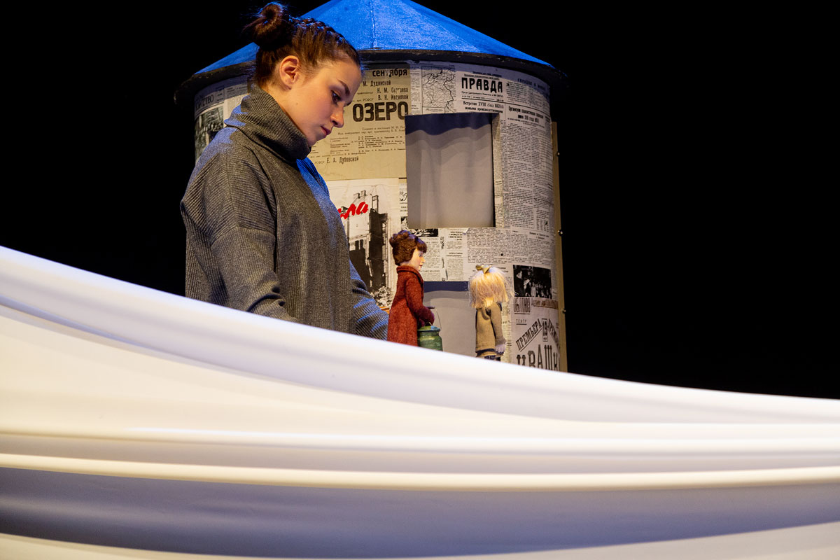 В основе постановки лежит рассказ Геннадия Черкашина «Кукла». Это одна из немногих книг, доступно и просто рассказывающая ребенку-дошкольнику о Великой Отечественной войне. Пронзительная история о девочке, пережившей блокаду, о ее дружной семье, о мужестве одних людей и ничтожестве других. Юные зрители попадают в то время, когда их прадедушки и прабабушки были детьми – в сороковые годы двадцатого века.