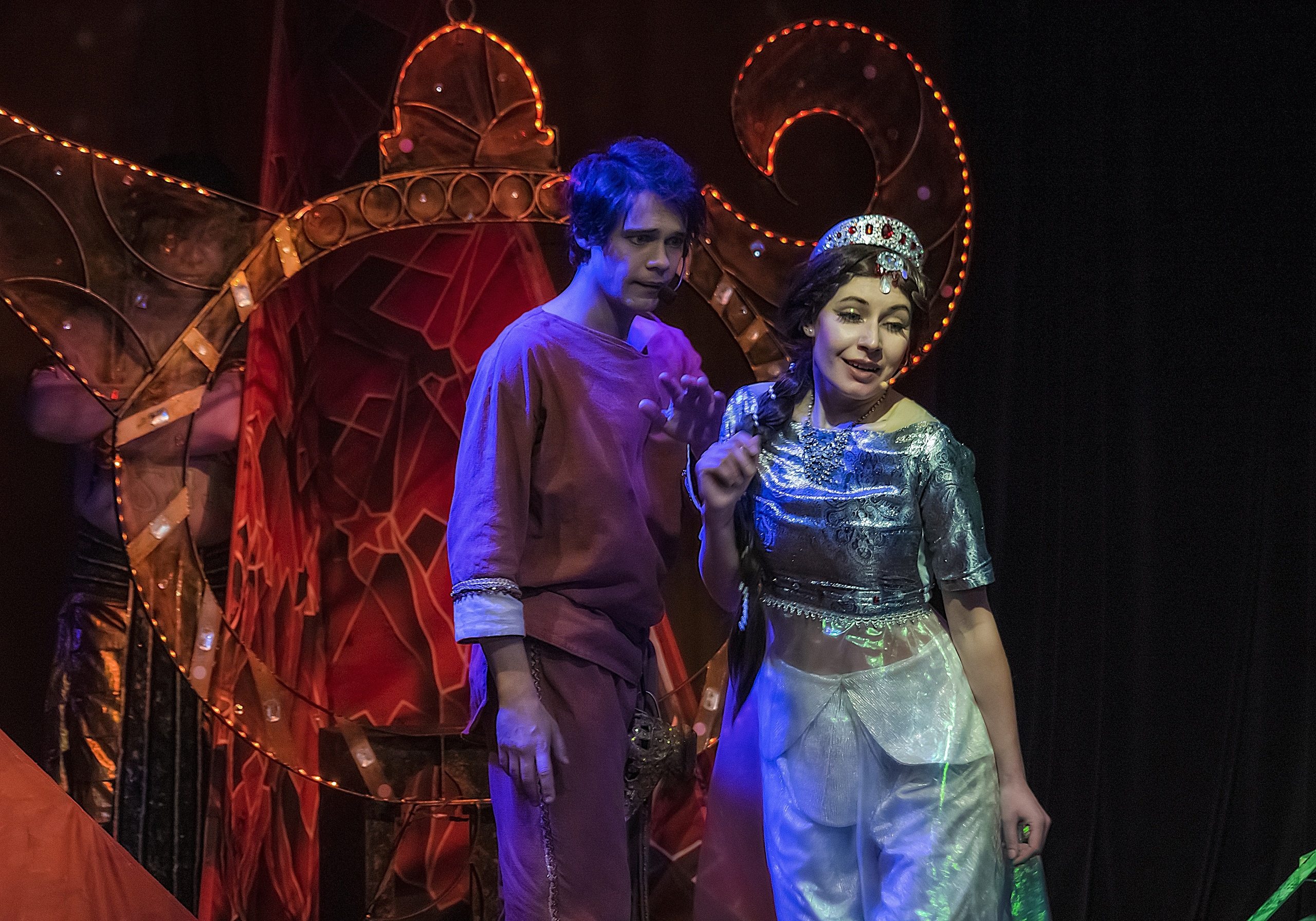 Всем известный сюжет о любви бедного арабского юноши Аладдина и принцессы Будур раскрывается ярким каскадом, состоящим из волшебных приключений, музыки и танцев. Злой Магрибский волшебник пытается обманным путем завладеть волшебной лампой – но она достается Аладдину, теперь джинн исполняет все его желания. Не страшны Аладдину ни интриги Визиря, ни козни волшебника – ведь любовь и дружба всегда побеждают зло.