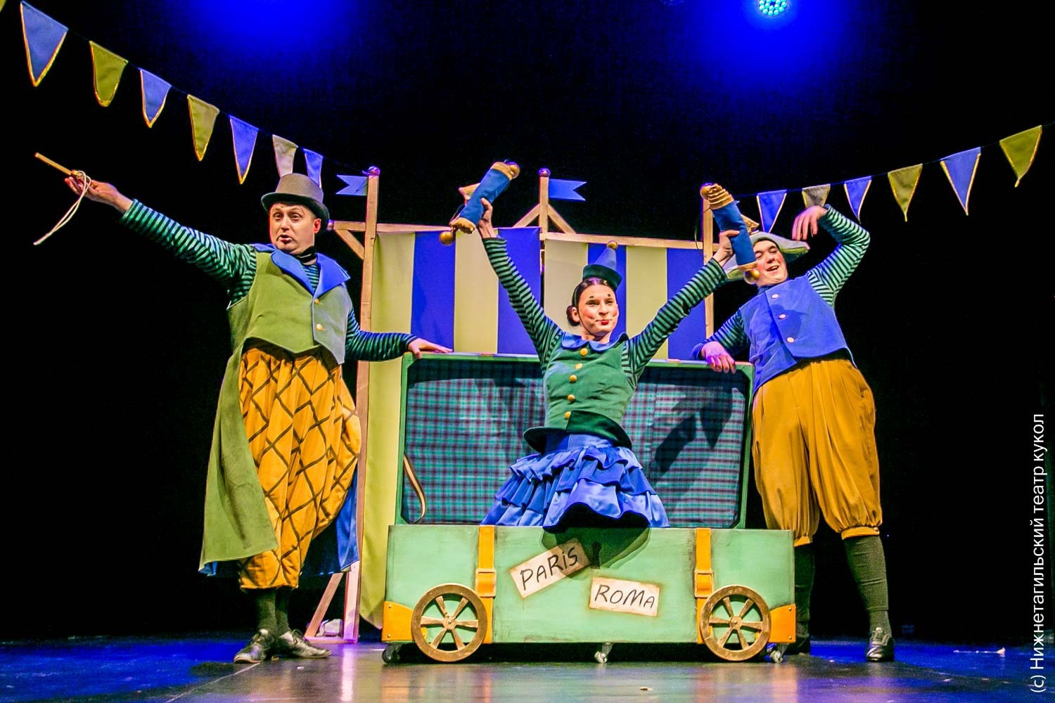 В постановке актёры работают не только с куклами, но и живым планом: выполняют акробатические трюки, танцуют, поют, музицируют на гитаре укулеле, шестигранной гармошке концертине и разновидности ксилофона - глокеншпиле.