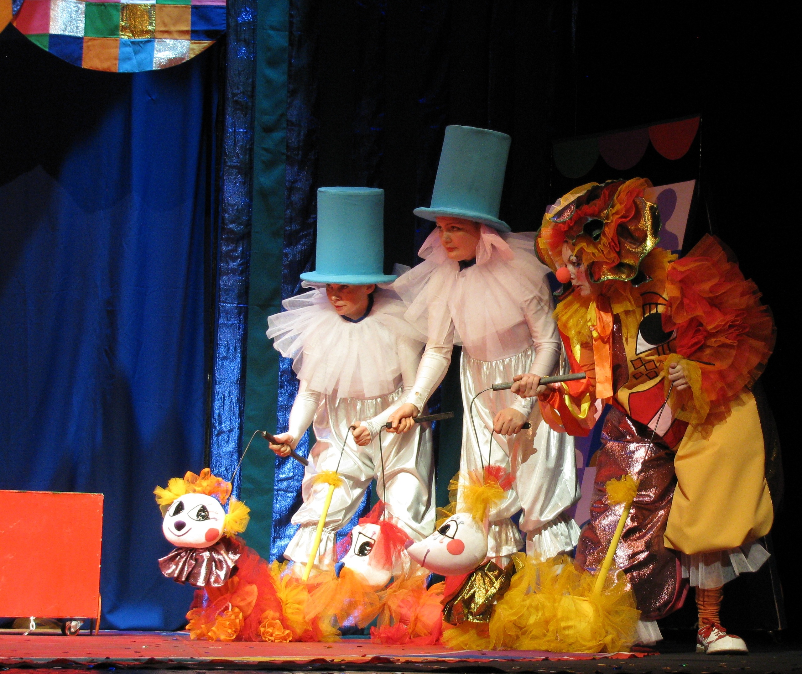 Цирковое шоу с клоунами и куклами. Если дело в шляпе, значит всё будет в порядке! Но в нашем спектакле не всё так просто. Нужно угадать, чья это шляпа? Дрессировщика? Алле-ап! – и на сцене появляются цирковые артисты: страусы, пингвины, обезьянки и даже … ОН!!! Фокусника? Алле-ап! – и вот фантастические исчезновения, головокружительные превращения. А если это шляпа Клоуна, то алле-ап! – под звуки циркового марша, начинается россыпь умопомрачительных шуток и реприз. Алле-ап! – занавес открывается!