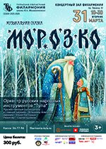 «Жили-были старик и старуха, и было у них две дочки. Настенька – добрая девушка, по хозяйству помогает. А Марфуша слова доброго не скажет, всё на печи лежит…». Так начинается «Морозко», одна из самых известных и любимых всеми зимних русских народных сказок. Это волшебная и поучительная история, в которой зло и жадность наказаны, а доброта и терпение вознаграждаются. Под чарующие звуки оркестра русских народных инструментов перед зрителями развернётся яркое зрелищное сказочное действо.