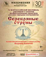 Всероссийский фестиваль дирижёров и солистов профессиональных оркестров народных инструментов "Серебряные струны" ведёт свою историю с 2011 года. За время своего существования фестиваль приобрёл авторитет и признание среди профессионального сообщества. Он способствует расширению культурного сотрудничества, традиционно собирает вокруг себя самобытных и талантливых музыкантов, даёт возможность соприкоснуться с яркими страницами музыки разных регионов России, привлекает интерес к исполнительскому искусству на народных инструментах и всегда становится подлинным праздником для всех, кому дорога национальная культура. Художественный руководитель фестиваля - Владимир Аленичев.