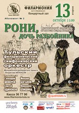 Итак, в средневековой Швеции в двух враждующих разбойничьих кланах выросли прекрасные дети, девочка и мальчик, Рони и Бирк. Вопреки обстоятельствам они подружились и поклялись быть братом и сестрой. Много опасностей пришлось им пережить вместе: нападение диких виттр, гибельные песни подземного народа, ревущий водопад и снежный плен. Но самое главное - силой своей дружбы они смогли побороть вражду двух своих семейств. Прекрасная музыка в этом спектакле призвана перенести нас в необычную страну, где обитают юные герои, рассказать нам о благородных чувствах, которые они испытывают, и сопровождать Рони и Бирка в их приключениях.