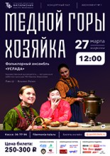 Всего один раз в году в потаённых подземных чертогах расцветает каменный цветок. И тому, кто его увидит, природа откроет все свои тайны. В сокровищнице уральских сказов П.П.Бажова особое место занимают истории о Хозяйке Медной горы. И не мудрено. Ведь именно эта чародейка помогает людям понять, а что же всё-таки важнее – счастье или богатство? Любовь или выгода? Красота внешняя или внутренняя? Вечный поединок между мнимыми и подлинными ценностями затрагивает каждого персонажа этих произведений, и кто одержит победу в этой схватке – вопрос, на который предстоит ответить зрителям. Динамичный сюжет, остроумные диалоги, сочный и самобытный язык, яркие герои – вот чем очаровывает нас творчество Бажова. А если прибавить к этому современные спецэффекты, мультимедийные технологии и талант исполнителей – получится спектакль «Медной Горы Хозяйка», который дарят вам артисты фольклорного ансамбля «Услада». А это значит, что нашими спутниками в этом удивительном путешествии будут народные песни, проникающие в самое сердце…