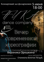 Танцевальная компания "Ника"- уникальный проект современного танца, объединяющий детскую школу-студию и молодежную танцевальную компанию. В его репертуаре - авторские работы в стиле современной хореографии (contemporary dance). Это миниатюры и танцевальные спектакли, поставленные художественным руководителем Вероникой Орешкиной, а также другими российскими хореографами. Важным этапом в развитии компании стало сотрудничество с хореографом из Москвы Дарьей Бузовкиной, авторству которой принадлежат спектакли современного танца "Чего хочешь ты?" и "Весна. ЕГЭ священное", а также множество миниатюр, которые в разные годы стали участниками проектов "Danzedialogi"(Кострома, площадка Станция), "Zdvig- лаборатория"(Киров, театр на Спасской), "БудуТанцы" (Калуга, Инновационный культурный центр" "Futurum", "Puzzle", Белая обезьяна", "Дети танцуют" (Москва, зал-конструктор Зил, Центр Мейерхольда и пр.).