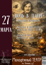 «Ночь театрального искусства» в Молодежном Театре создаёт пространство для внимательного вслушивания в гоголевскую прозу и её драматическую природу. Артисты распределят роли и представят произведение в формате сценической читки, сохраняя структуру оригинального текста и акцентируя его интонационные особенности.