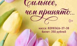 А теплый вечер ЗАПОМНИТСЯ НАДОЛГО! Праздничный концерт «Сильнее чем принято» - это потрясающий шанс подарить себе и близким эмоции радости, улыбок и теплую атмосферу, которую каждая хочет почувствовать в этот день. Подарите этот вечер маме, любимой, подруге или… себе.