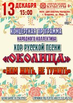 Дом культуры молодежи приглашает всех любителей русской песни на концерт народного хора русской песни «Околица».