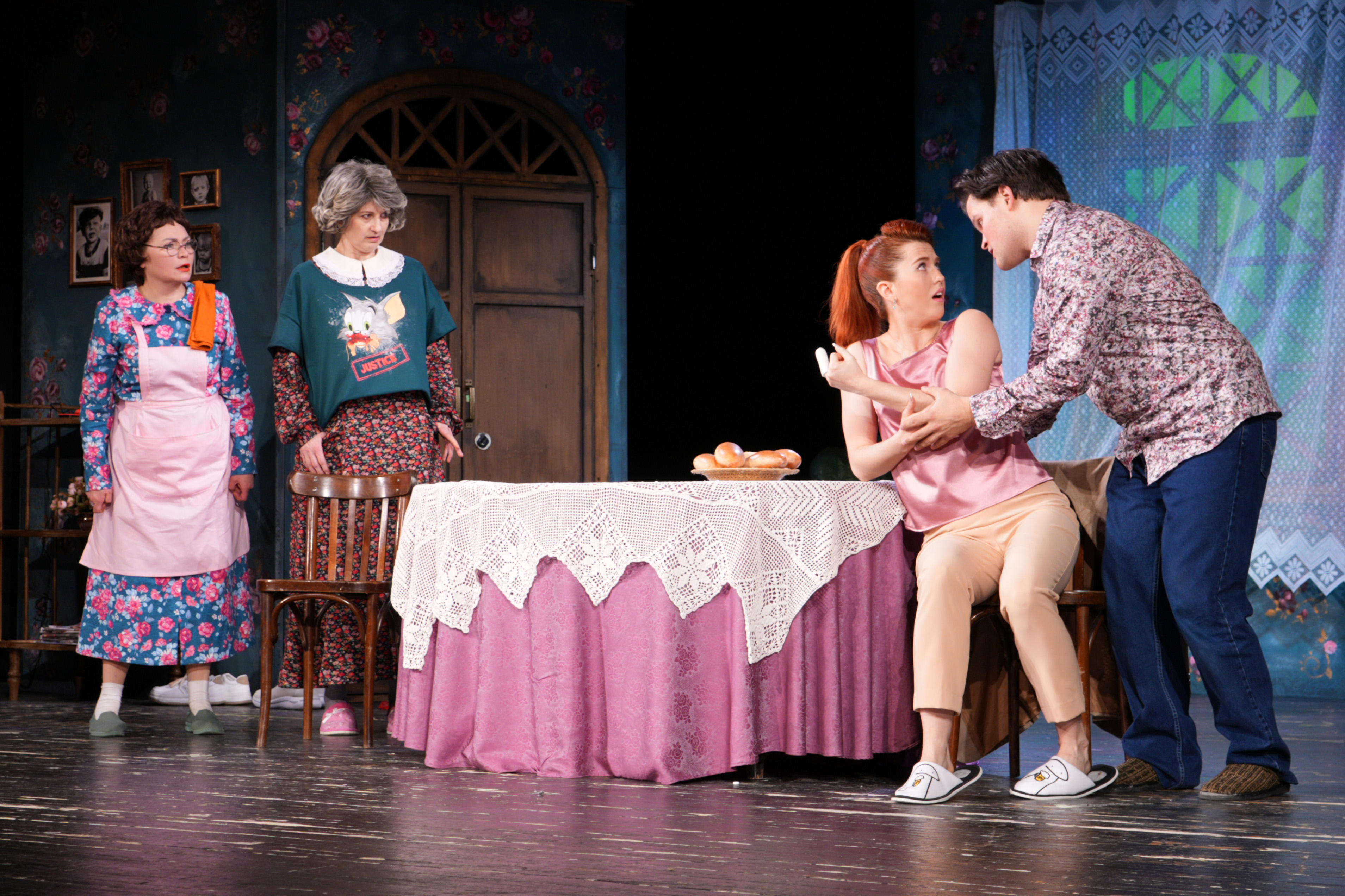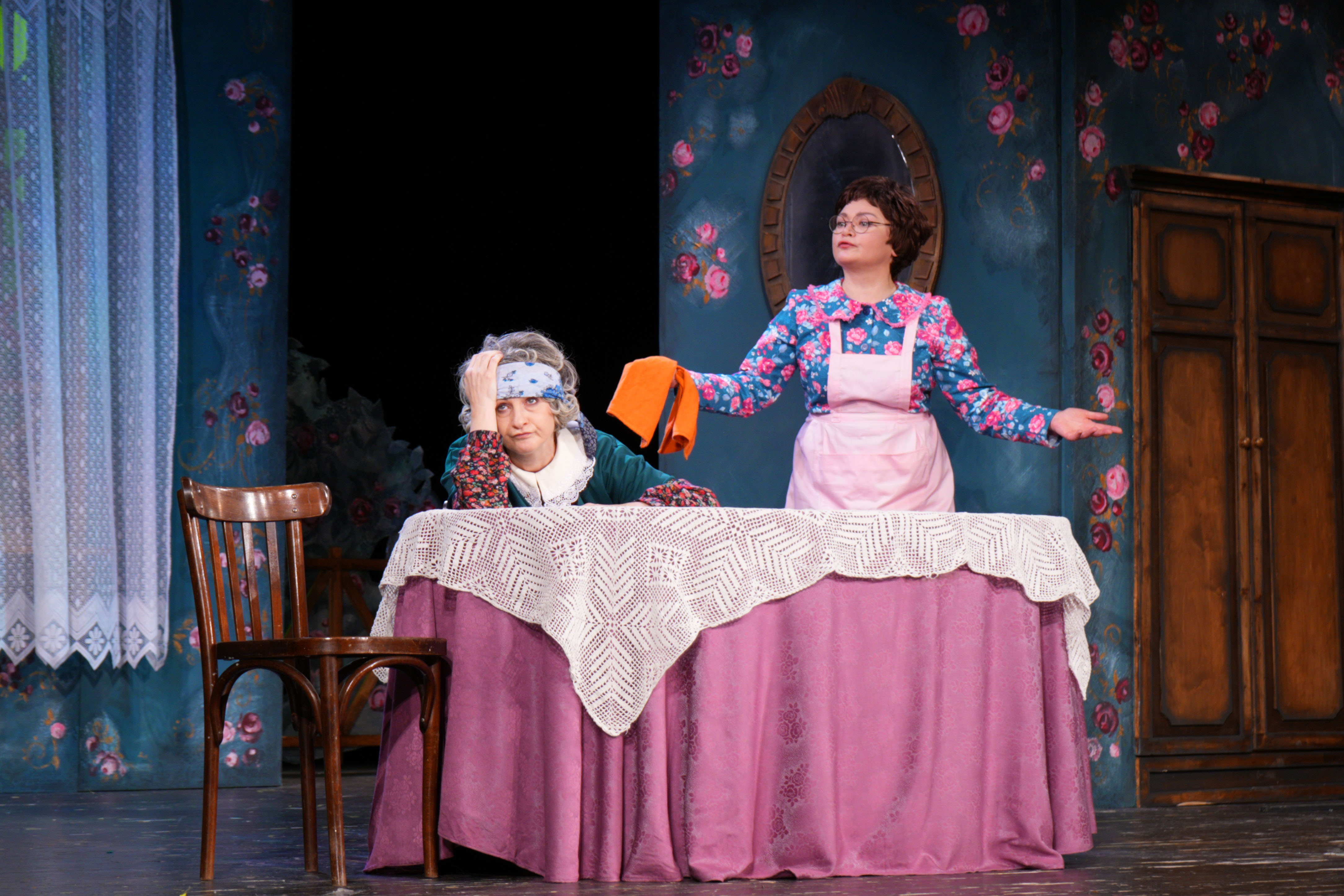 Главная тема этого спектакля – семья, её сила. Держись своей семьи – не пропадёшь, говорят нам авторы спектакля. А множество нелепых ситуаций и совершенно непредсказуемых поворотов сюжета держат зрителя в состоянии смеха оба действия, делая «Тёток» по-настоящему «народной» комедией!