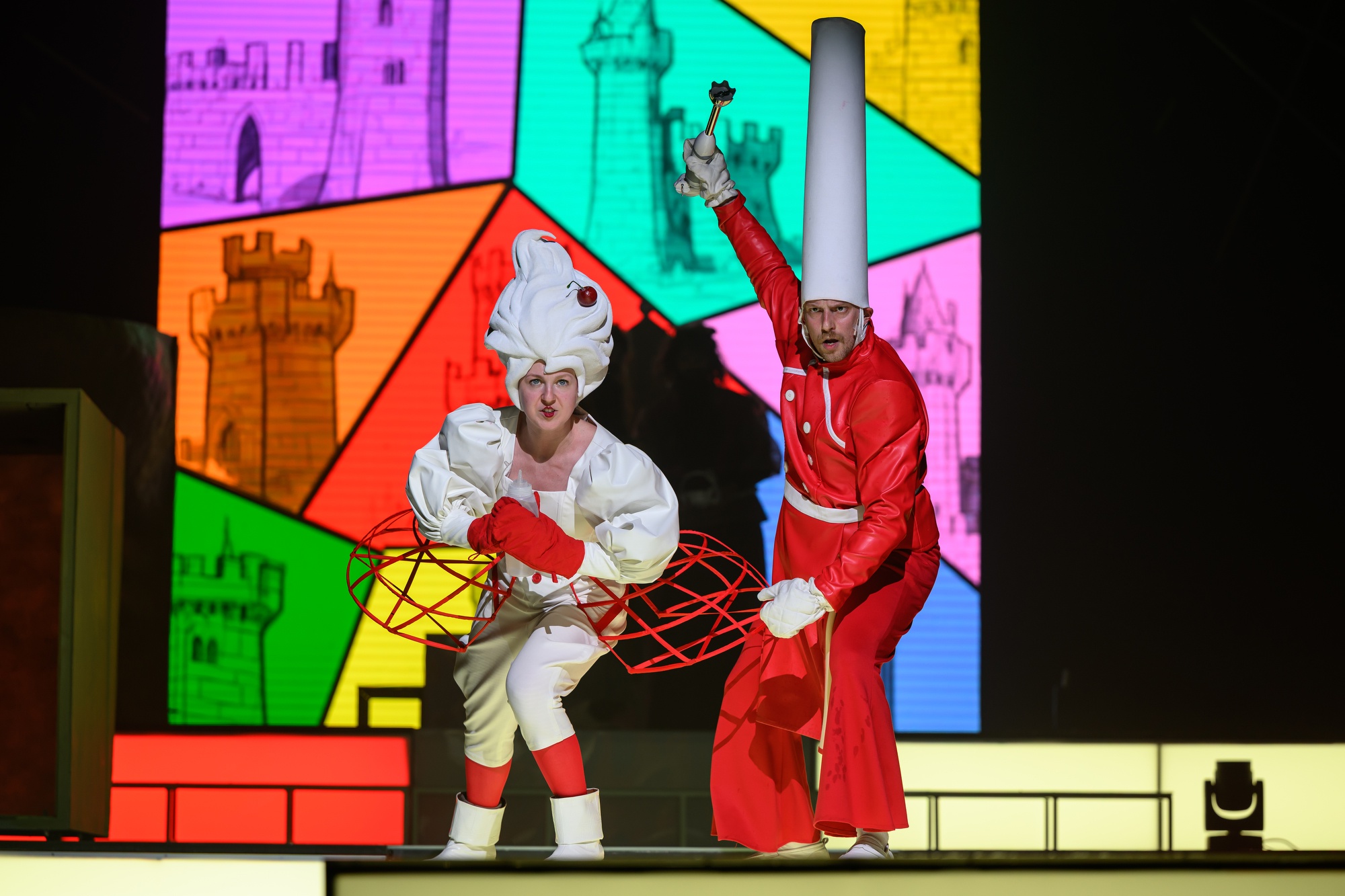 Взрыв образов, красок, звука. Удовольствие в каждой сцене, движении, реплике. Буффонада, какофония и абсурд сливаются воедино в цельную и работающую конструкцию, вызывающую неподдельный восторг и желание подольше остаться в этом сказочном мире.