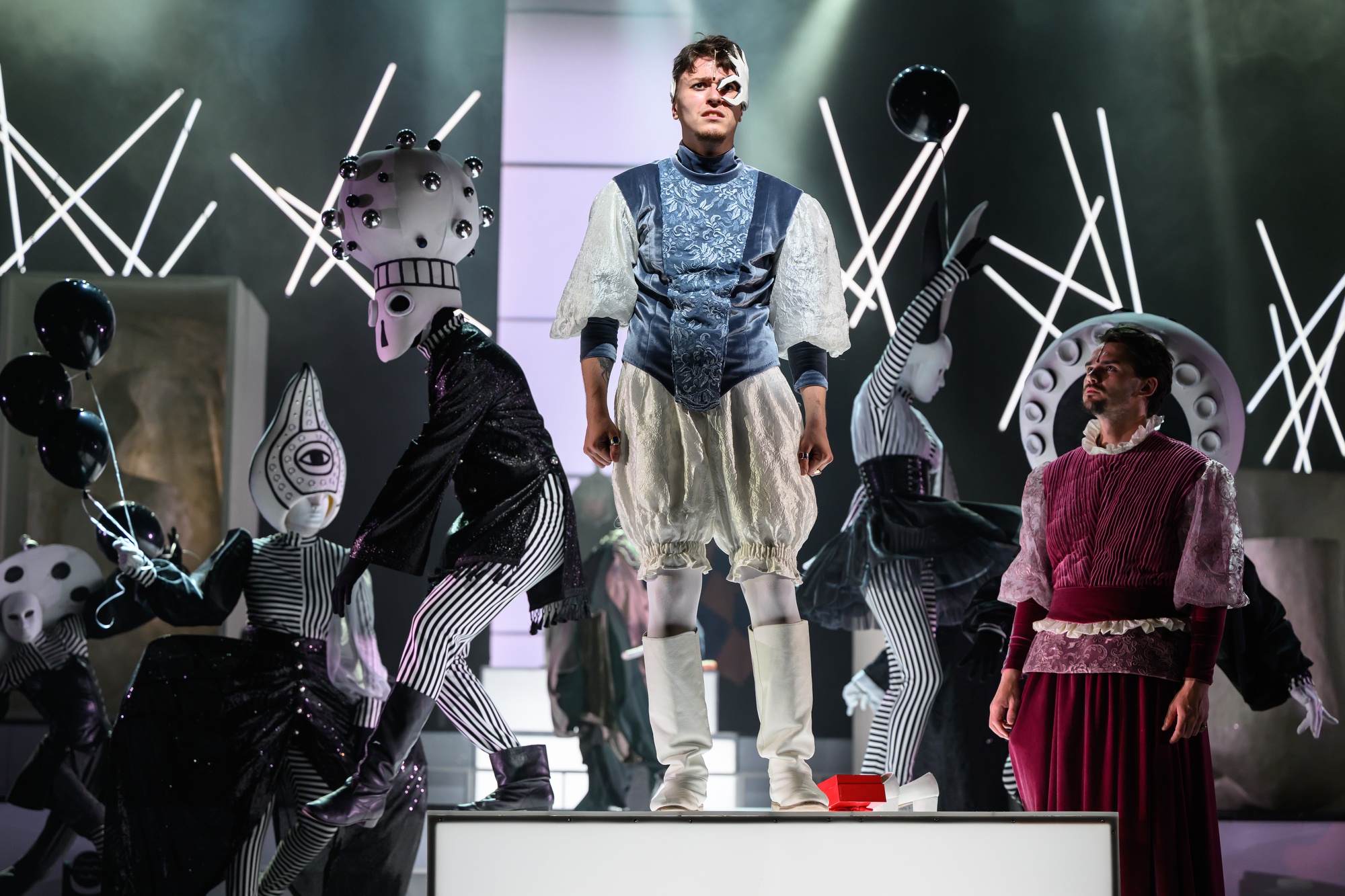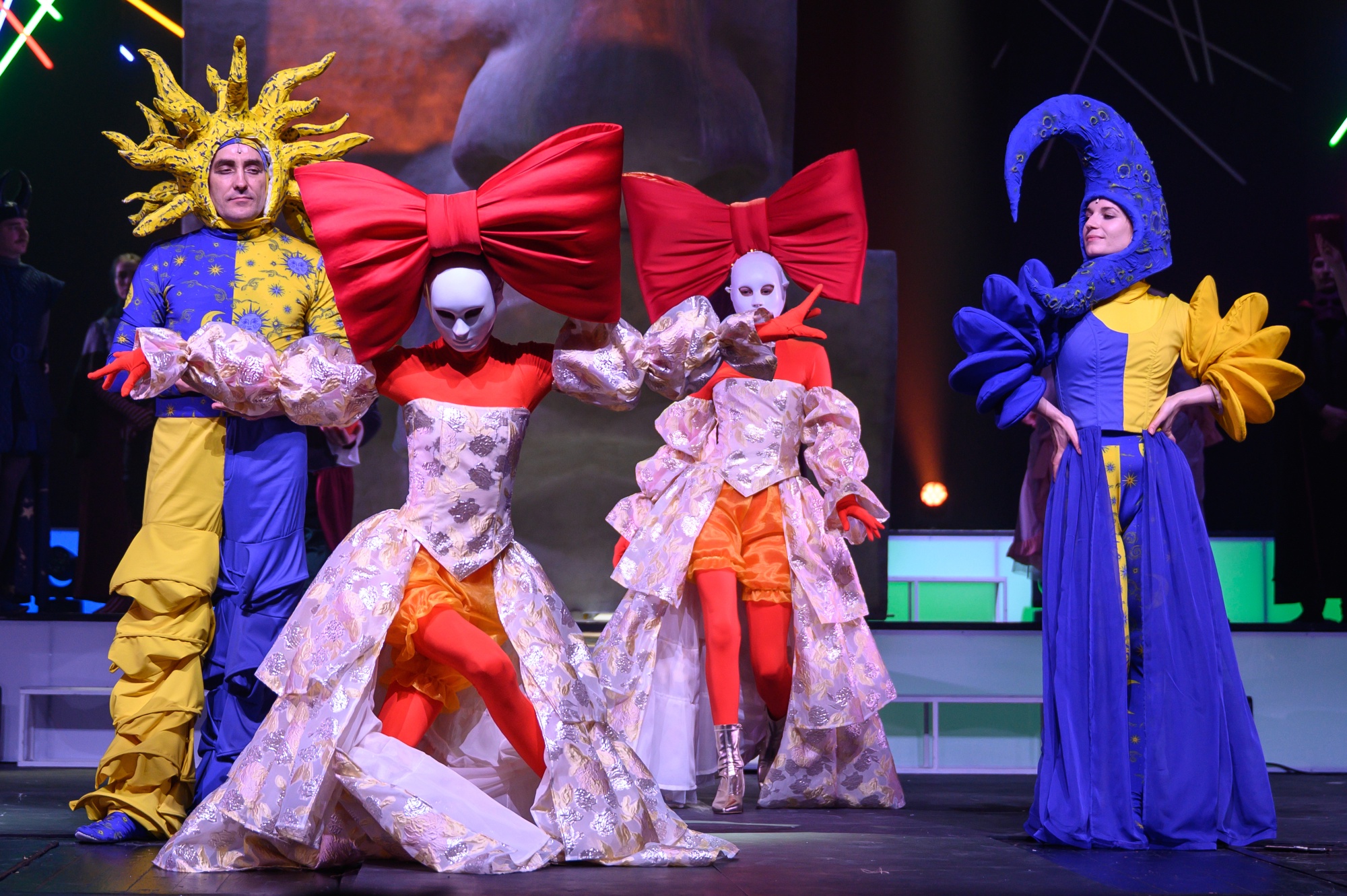 Герои и их костюмы, декорации из частей лица, которые в финале «воссоединились», музыка и конструкции сцены, юмор и различные интересные моменты из современной жизни и тд - это всё хочется смаковать, обдумывать и наделять смыслом. И у каждого он свой 👌