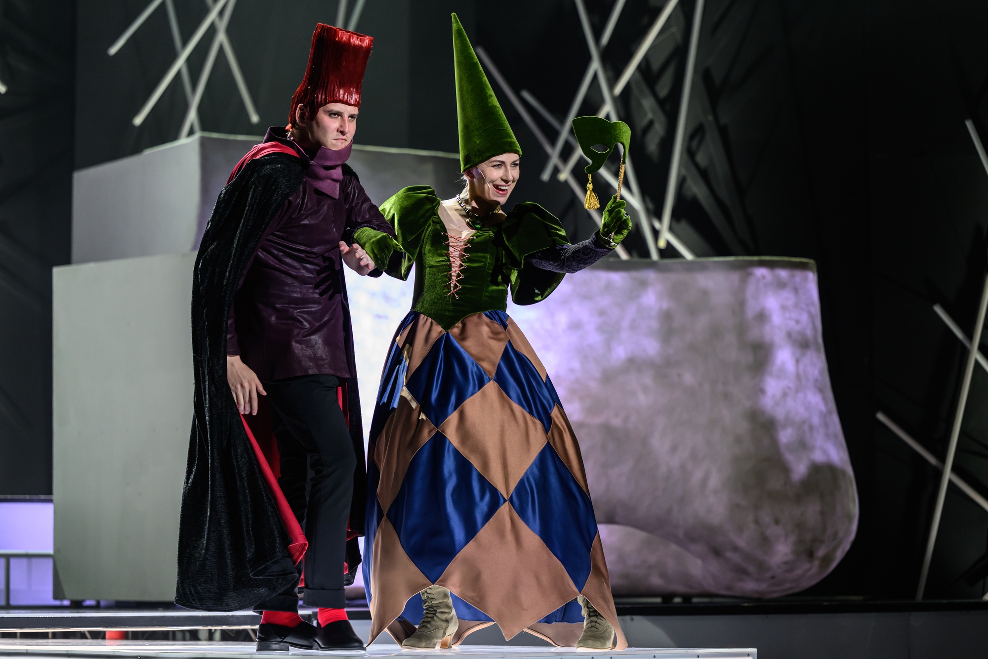 Для режиссера Александра Агеева и постановочной команды спектакля интерес представляет не попытка реконструкции жанра, а выход на современное высказывание. Сохранив все формальные признаки комедии дель арте (импровизацию, типажи, маски, сюжетные схемы, элементы физического театра), мы стремимся создать синтетический спектакль нового типа, гармонично сочетающий зрелищность и философский подтекст, захватывающий сюжет и шутки на тему поп-культуры, красоту и юмор, современные спецэффекты и традиционную театральную машинерию.